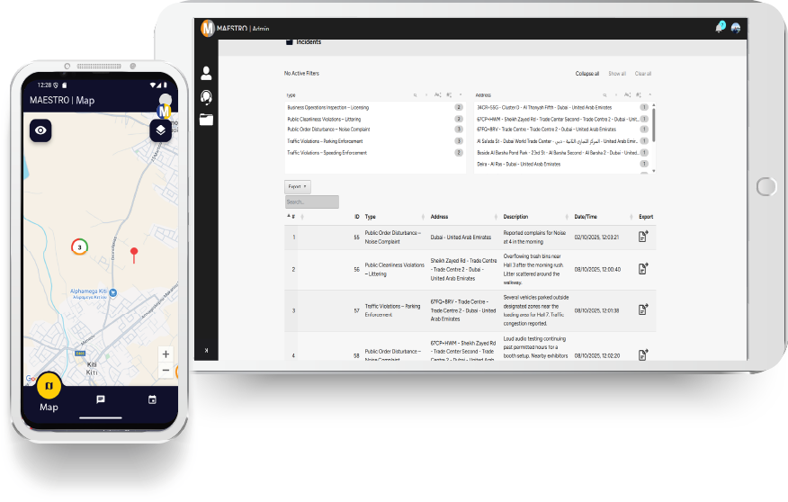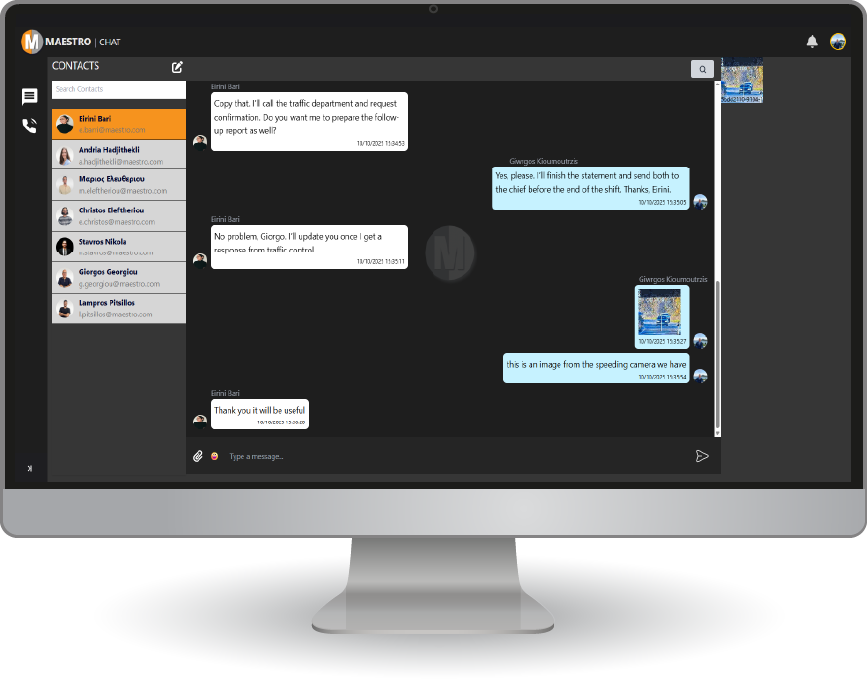 A service layer that integrates with the call/dispatch centre allowing incident intake, dispatching, monitoring and escalation all aligned with MAESTRO4POLICE.