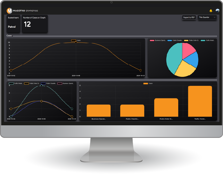Enables the agency to analyse incident data (types, trends, hotspots, response times). Useful for strategic decision making and improving operational performance.